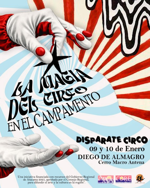 El programa incluye talleres de circo, dirigidos a niños, niñas y familias de la comuna, los cuales se llevarán a cabo los días 9 y 10 de enero, entre 09:30 y 11:00 horas, en una carpa especialmente instalada en el sector Cerro Macro Antena. La invitación es abierta y gratuita para toda la comunidad de Diego de Almagro que desee participar.